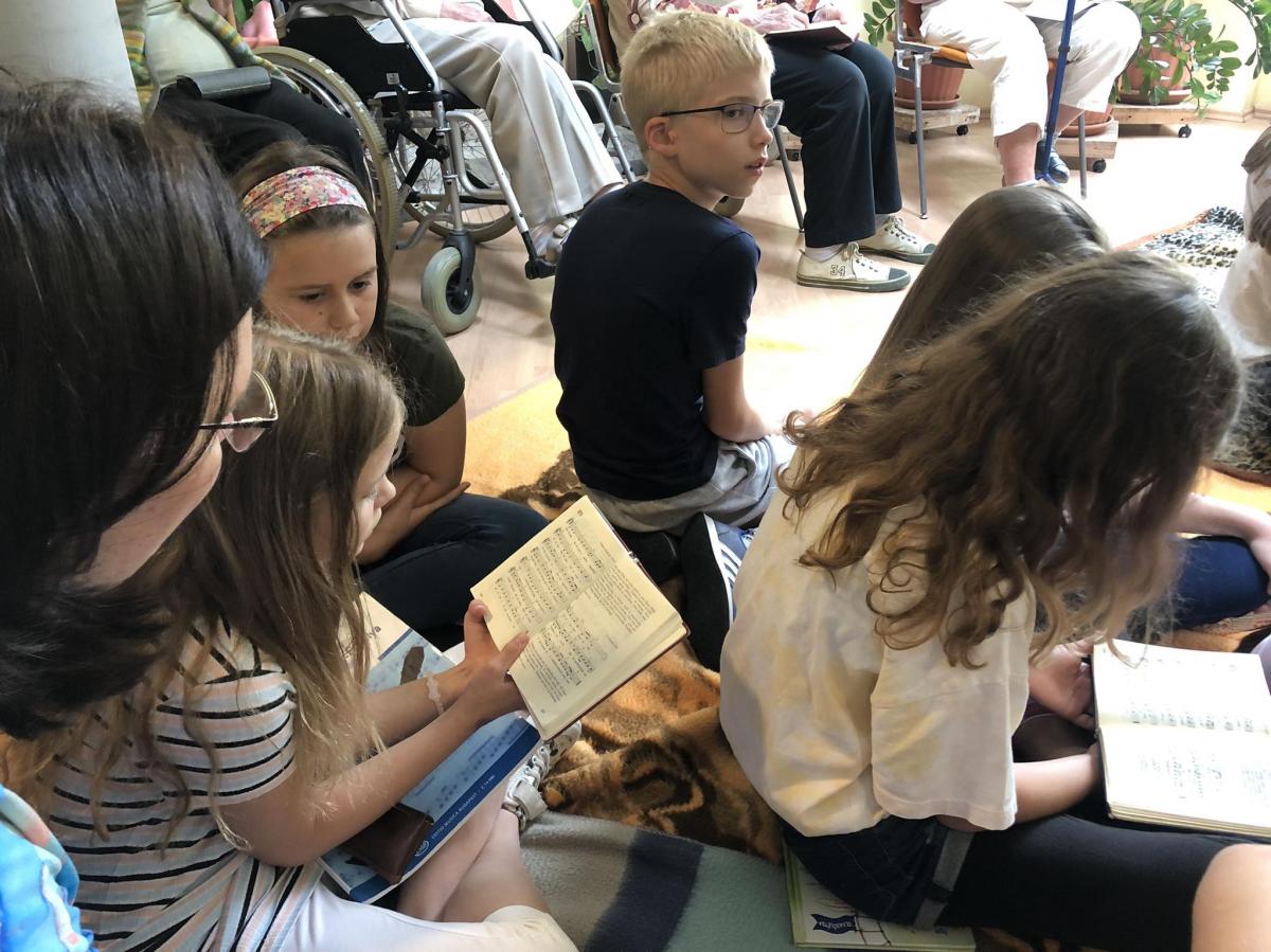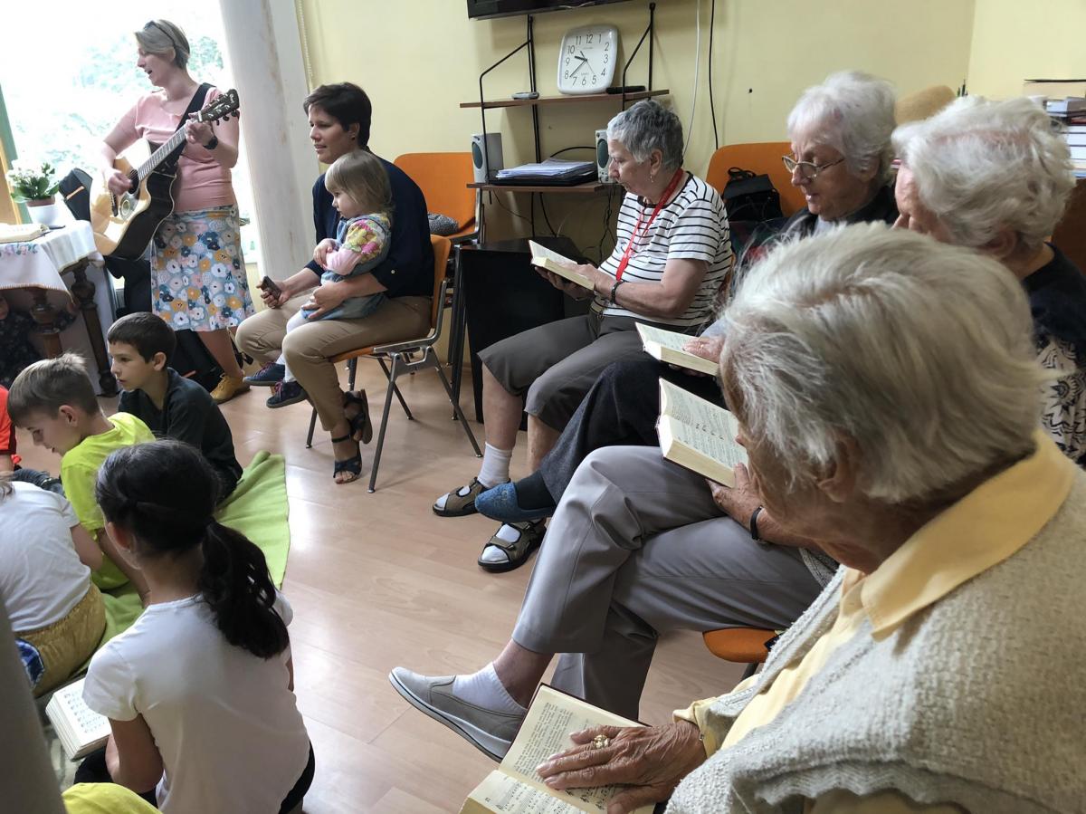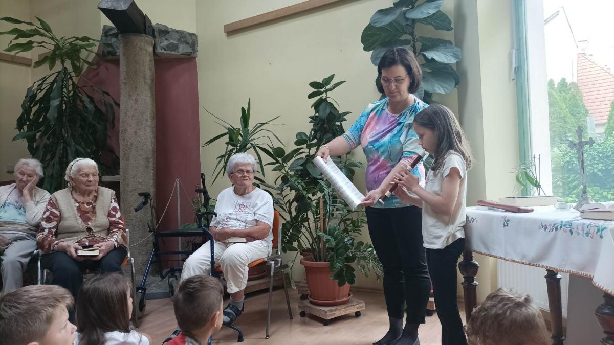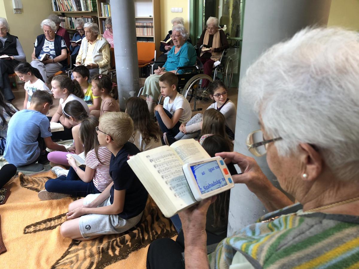 A közös lelki alkalom után mesével, zenével, tánccal kedveskedtek a szépkorúaknak a gyerekek. Tinicsné Berta Brigitta tanító néni pedig Grecsó Krisztián novelláskötetéből olvasott fel lakóinknak, sőt a kötetet oda is ajándékozta, hogy időseink olvasgathassák a szívet melengető, és olykor szívbe markoló történeteket.