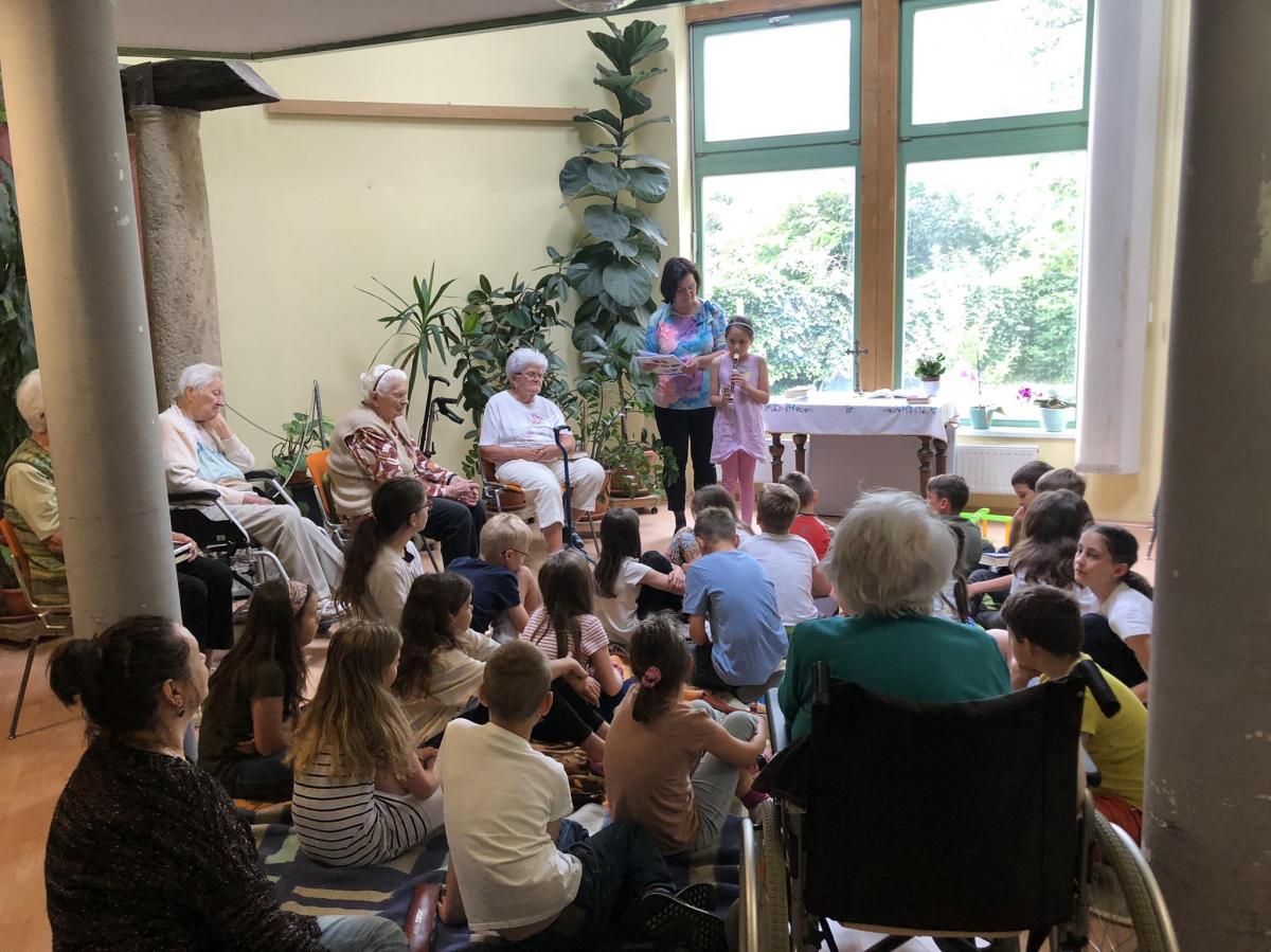 Az utolsó iskolai héten, a vakáció küszöbén sem feledkeztek meg a Reményik Sándor Általános Iskola diákjai időseinkről. A 2.a osztály érkezett a Túróczy Zoltán Szeretetotthonba: a gyerekek meglepetésműsorral készültek.
