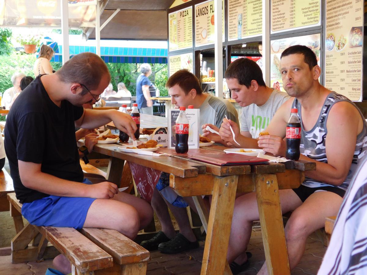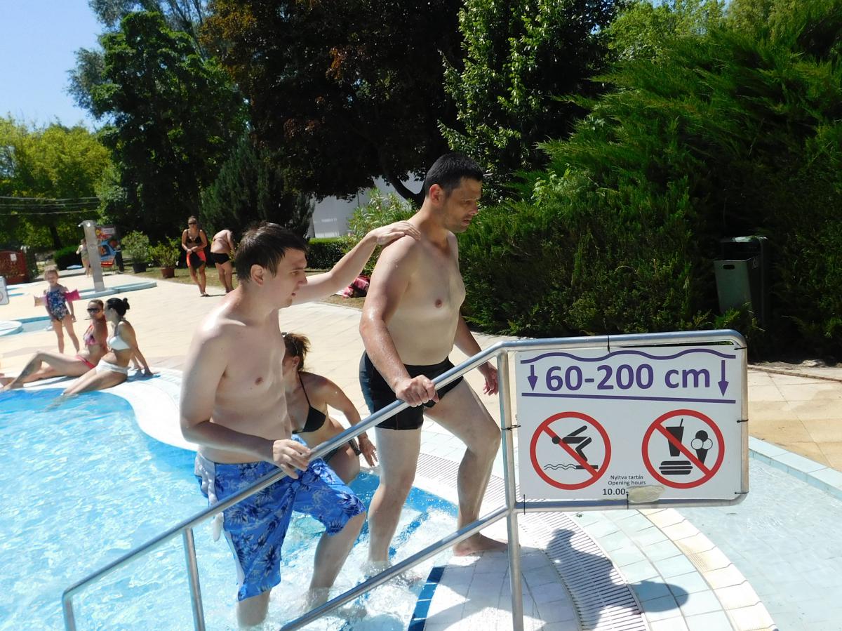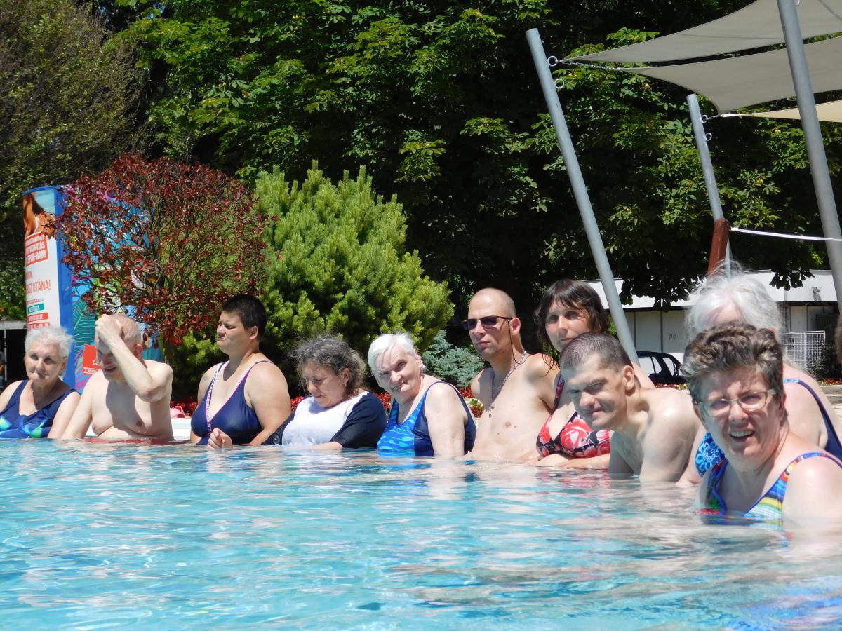Június 30-án intézményünk 44 lakója 6 munkatárs kíséretében egy napra a Balatonra utazott. A tavalyi kellemes tapasztalatok után idén is a keszthelyi városi strandok választottuk a fürdéshez, kikapcsolódáshoz. Az árnyas vízparti fák alatt kényelmes helyet találtunk a plédjeinknek, és ki-ki kedve szerint megmártózott a 25 fokos simogató vizű Balatonban. Akik inkább a medencés fürdőzést kedvelik, azokat sem érte csalódás, mert a kristálytiszta hűvös vízben jól esett az üldögélés a délutáni melegben. A partmenti büfében elfogyasztott ebéd után még egy sör vagy palacsinta is belefért, kinek-kinek ízlése szerint. A jó idő szerencsére estig kitartott, így a hosszú bezártság utáni megérdemelt pihenés igazán jól sikerült.