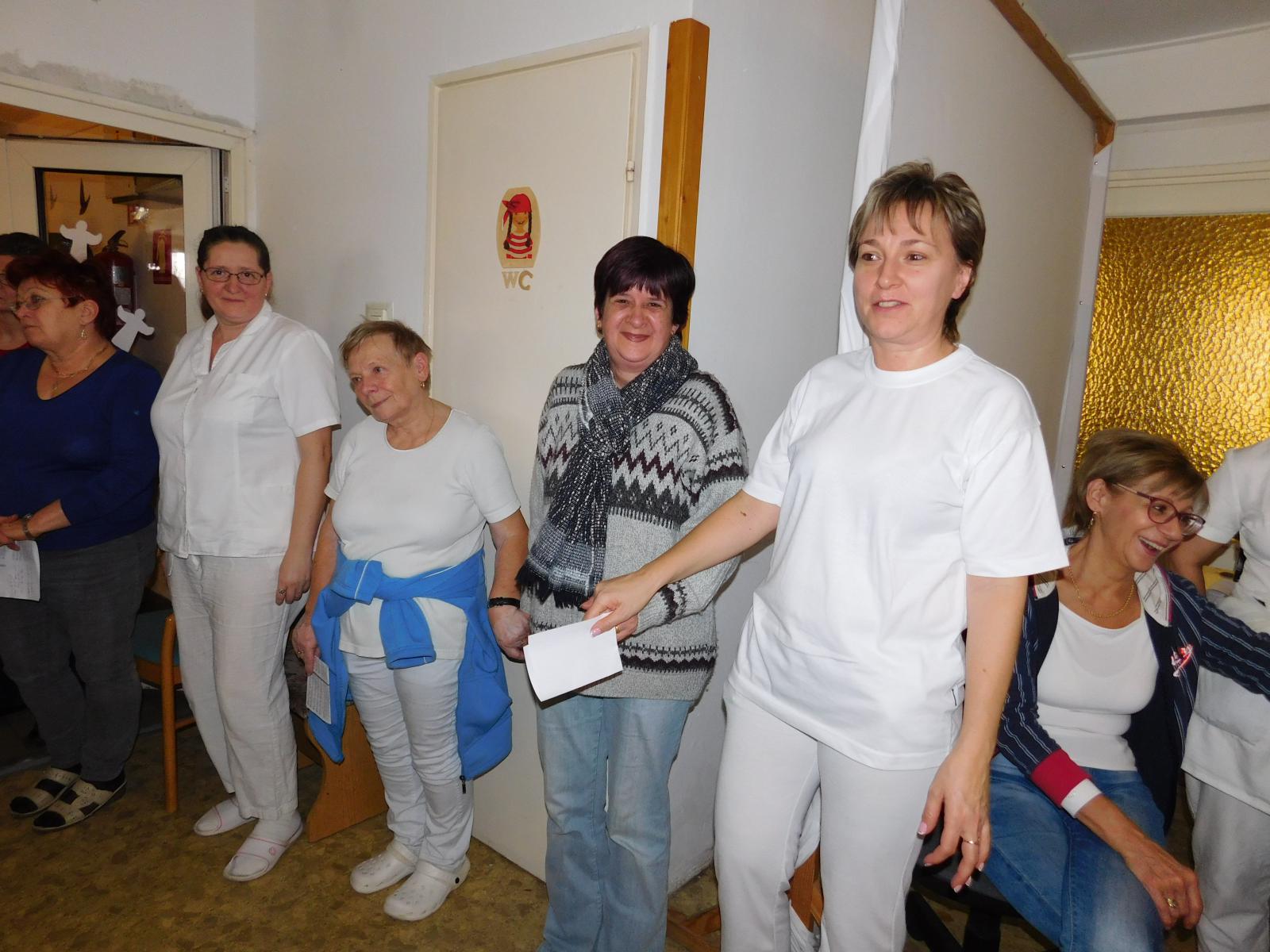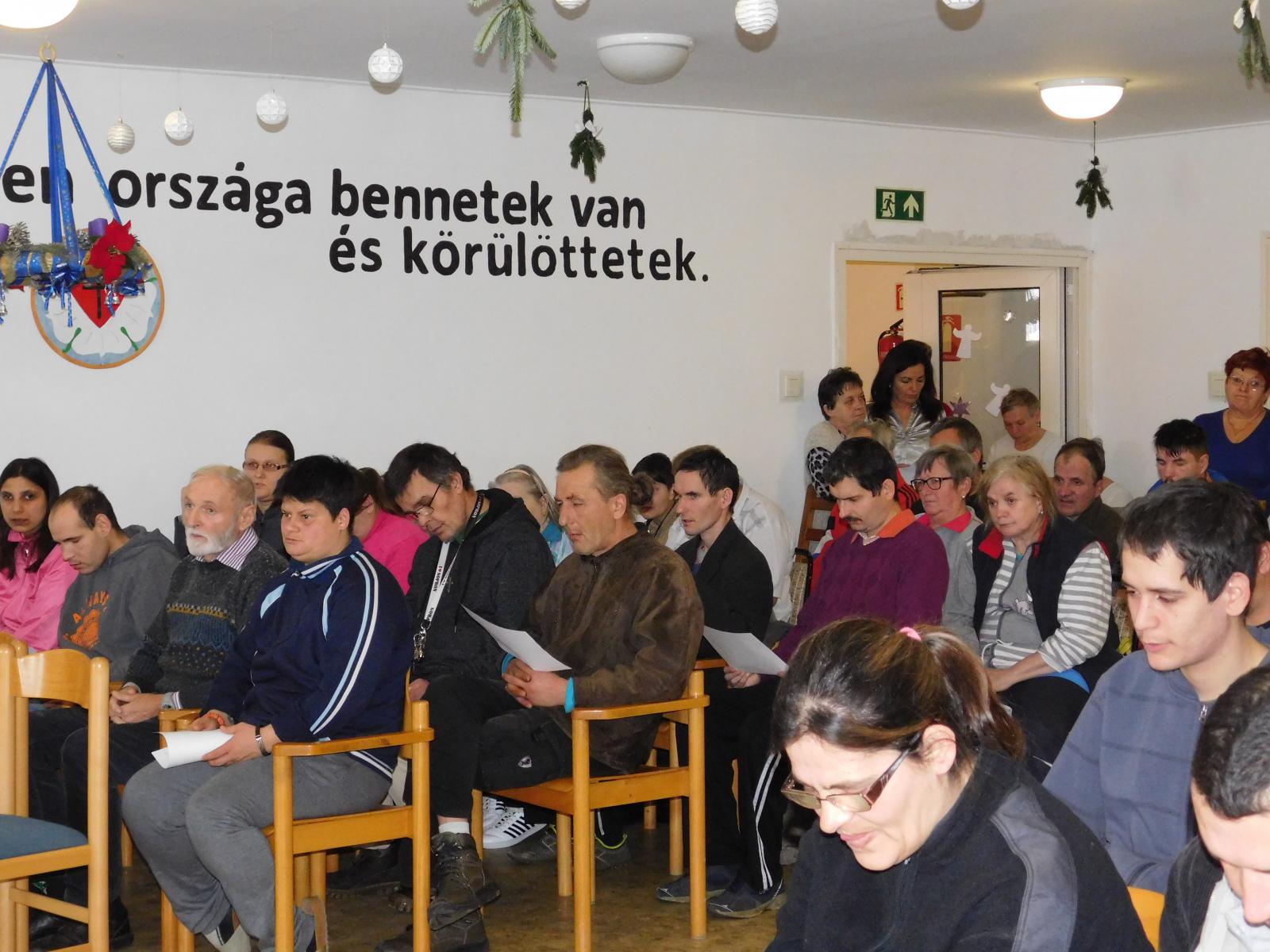 Csütörtök délelőtt 10 órára megtelt az intézmény társalgója, ahol lakók és dolgozók a szombathelyi munkatársakkal kiegészülve közös ünneplésre gyűltek össze. Mintha a természet is megérezte volna ezt a karácsony közeli várakozást, mert a meleg teremből kitekintve láttuk, ahogy az esüstös ködben hullni kezd a hó. Az ágfalvi otthon, ami alaphelyzetben inkább nyüzgő hangyaboly, mint a béke szigete, most egy rejtett, ritka arcát mutatta. Igaz, ádventben sokat beszélünk a csendről, s bár görcsösen keressük, lázasan kutatjuk, a karácsonyt megelőző egyre erősödő dübörgésben - valljuk be - nehezen találjuk. Aztán hirtelen, mikor már végképp lemondtunk volna róla, megtörténik. Egyszer csak csend lesz. Nem egyszerűen mi maradunk csendben, hanem a csend talál ránk. Így lett csend mindannyiunkban az istentisztelet alatt, mikor a liturgiában életünk átgonolására kaptunk bátorítást. Már csak egy karnyújtásnyira az ünneptől, de még nem a fa alatt becsomagolt ajándékokra pislogva, megérint bennünket a kegyelem azon egyszerű és tiszta ajándéka, hogy büntetlenül önmagunk és mások előtt is csendben maradhatunk. Csendben, békében. Ahogy az igehirdetésben hallottuk, mi igazából olyanok vagyunk, mint a betlehemi jelenet szereplői. Feloldhatatlan tűnő különbözőségeinkben, öregen és fiatalon, segítőként és segítettként, okosan és szentül együgyűen, így együtt mindannyian teremtjük meg a karácsony titkát. Mert a jászolban fekvő kisded körül szépen elrendeződik a világ, megtalálja a helyét a kincseket hozó bölcs király és foltos tarisznyájával a pásztor, a glóriát zengő angyal és a bégető bárány.