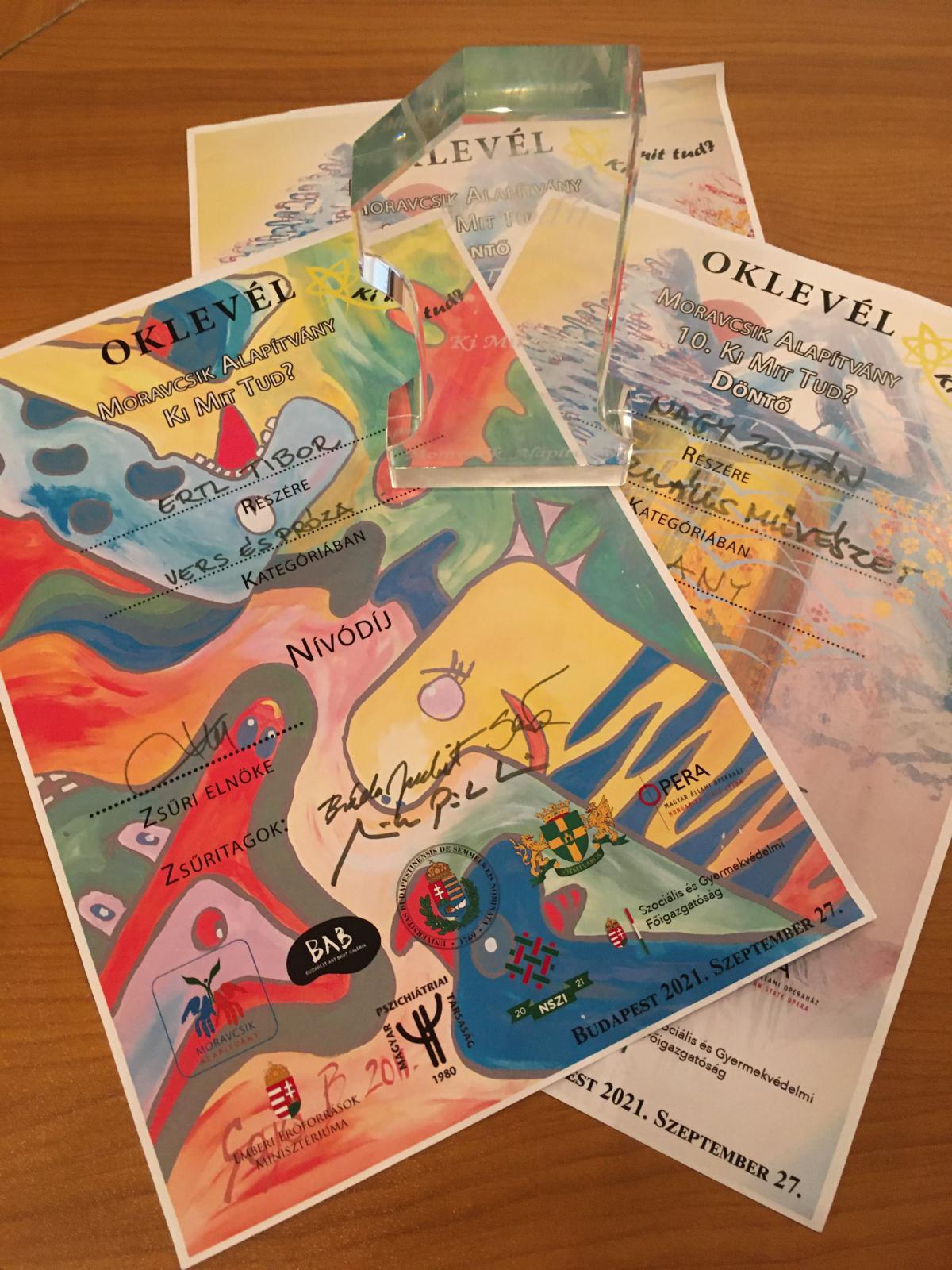 Tizedik alkalommal rendezte meg a Moravcsik Alapítvány a "Ki mit tud" tehetségkutató döntőjét Budapesten. A versenyen minden olyan szerepelni vágyó sorstárs szerepelhetett, aki a regionális döntő rostáján keresztül bejutott a versenybe. A fellépők reprezentatív helyszínen, az Operaház Eiffel Műhelyházában léphettek színpadra. Intézményünket három lakó képviseltette, akik mindhárman díjazottak lettek. Ertl Tibor verssel és Limberger Pál énekkel indultak, mindketten ezüst fokozatot értek el. Nagy Zoltán pedig kisfilmjével arany fokozatot kapott. Külön meglepetés volt a díjkiosztón, amikor Ertl Tibor az elmúlt tíz év kimagasló teljesítményéért "Nívódíjat" vehetett át.