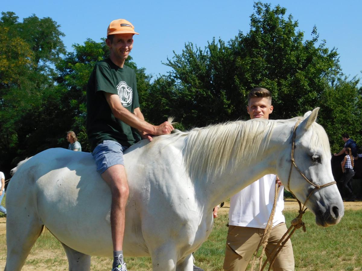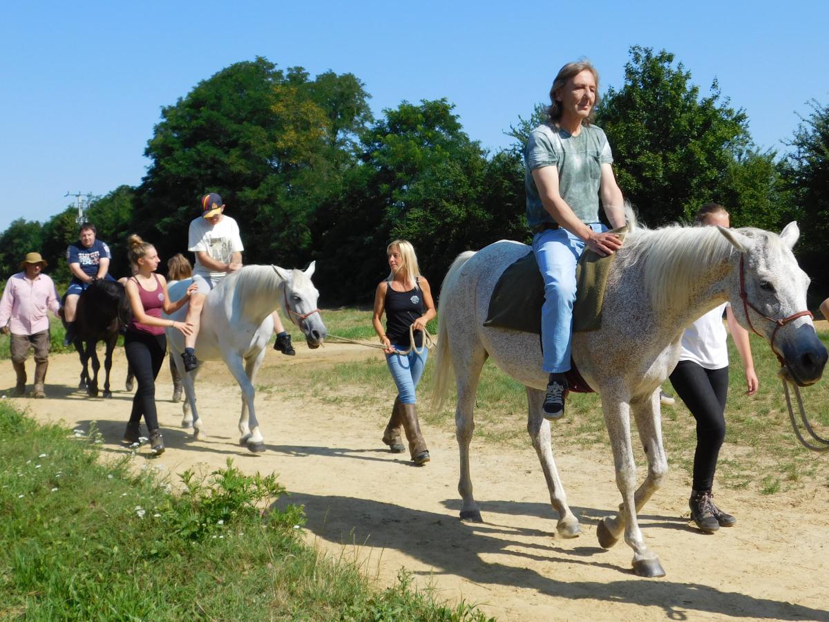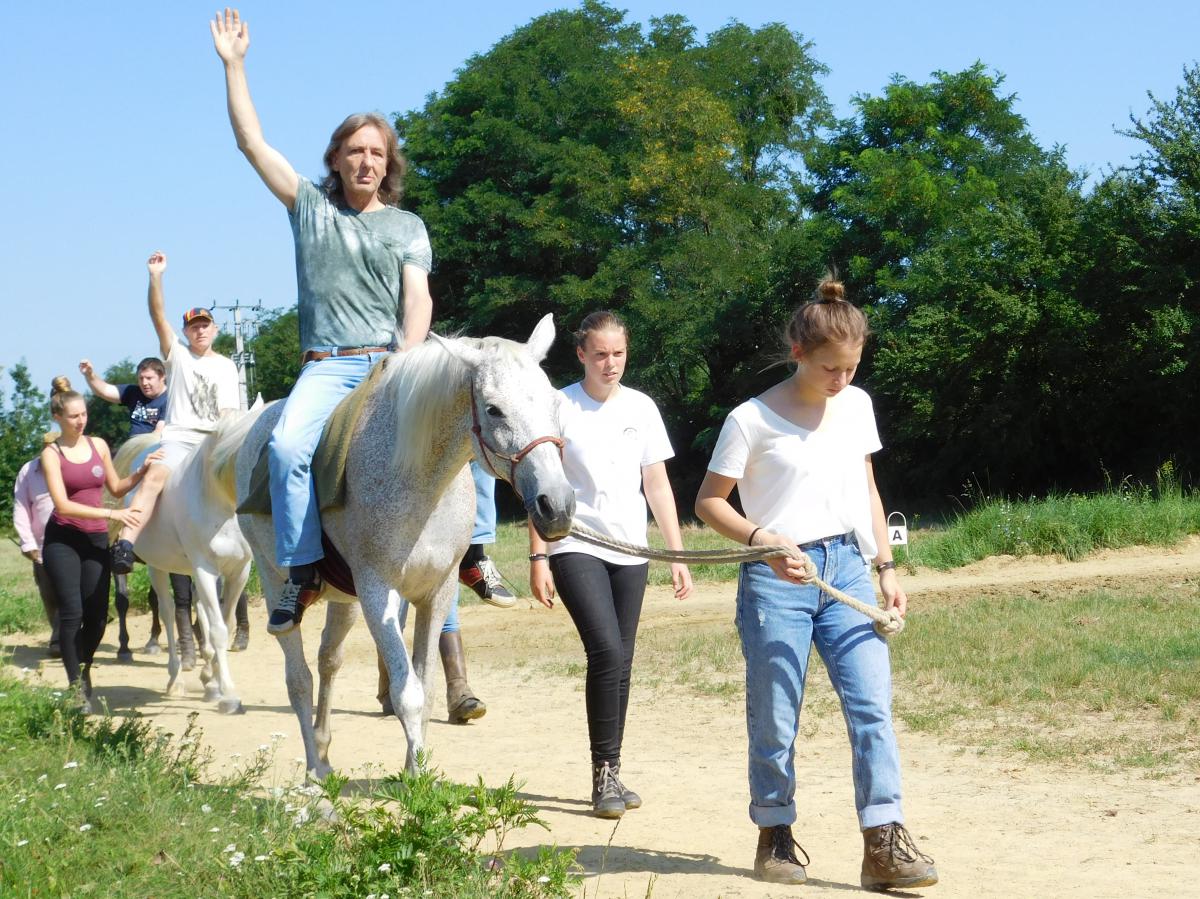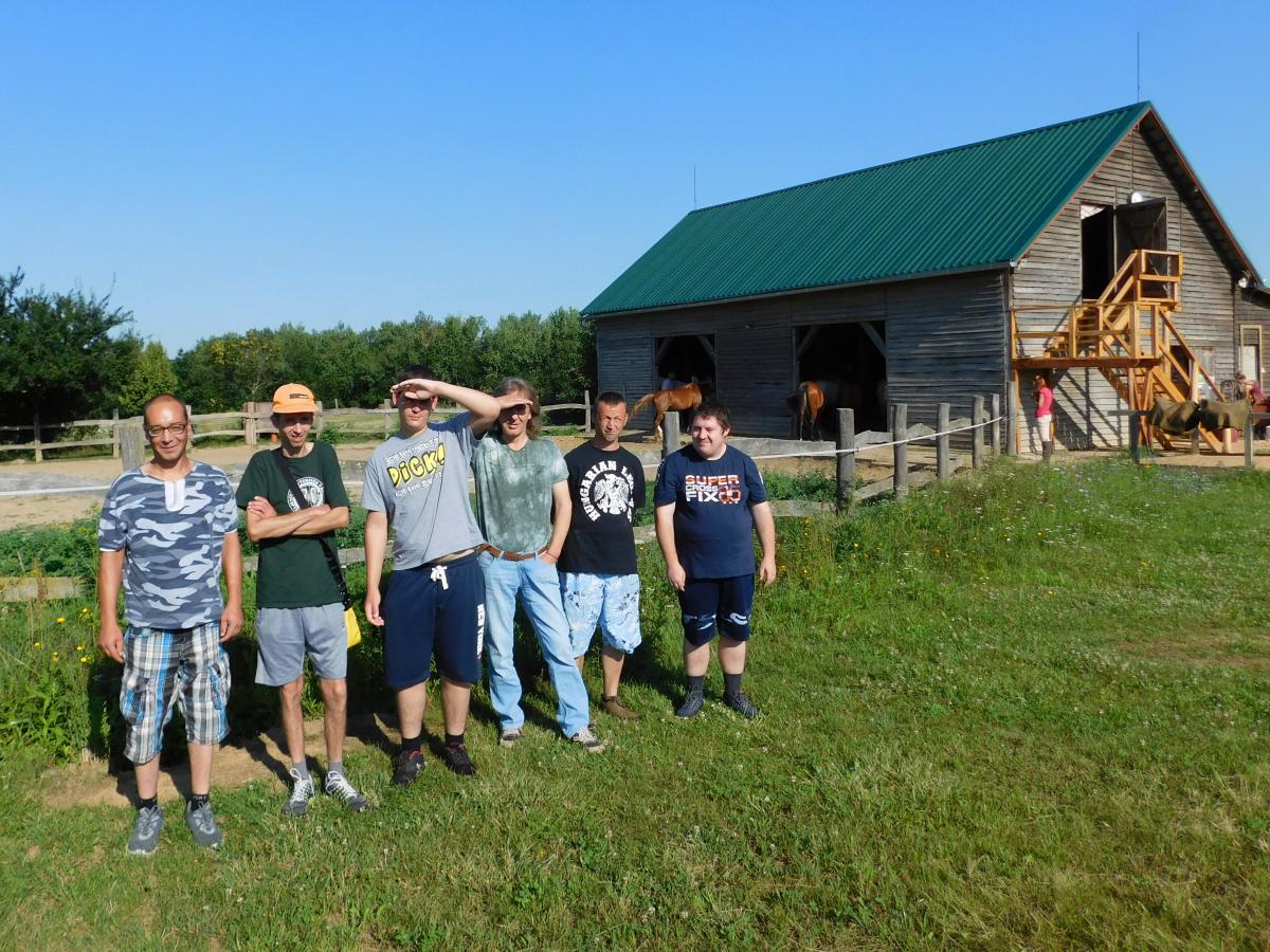 Július 30-án, csütörtökön hat lakóval felkerekedtünk és meg sem álltunk Horvátzsidány hataráig. A falutól nem messze, de a civilizációtól mégis tisztes távolságban terül el Martonszállás. Egy tisztás közepén, a Kőszegi-hegység lankás előterében egy varázslatos világ bontakozik ki a látogató előtt. Mintha nem is a megszokott mindennapokban járnánk, hanem egy romantikus film díszletei közé csöppentünk volna. Marton Ágoston, a hely gazdája már évek óta minden nyáron egy hétre vendégül lát fogyatékkal és pszichiátriai betegséggel élő embereket. A táborban lovaglással, íjászattal, kézműves foglalkozások telik az idő, és a rátermett segítők keze alatt közösséggé formálódik a csapat. Az ide esztendőben a koronavírus járvány miatt elmaradt az egyhetes tábor sok-sok ellátott szomorúságára. Egy kicsit azért megvigasztalt minket Ecker Zita, zsirai mentálhigiénés kolléganőnk telefonhívása, aki egy egynapos, sűrített táborpótló napot ajánlott nekünk. Így jutottunk el idén is egy kisbusznyi lakóval Martonszállásra. Zoli és Ervin, két lakónk, akik már tapasztalt táborozók itt, pillanatok alatt eligazítottak minket az alapvető tudnivalókról, s közben megérkeztek a társintézmények lakói is. A program 9 órakor kezdődött, az első napirendi pont a lovaglás volt. A szépen gondozott, kezes terápiás lovak még a félénkebb lakók bizalmát is elnyerték. Minden ló mellé két segítő is jutott, akik a még esetleg fennmaradó félelmeket is pillanatok alatt eloszlatták. A lovaglás után íjászattal folytatódott a foglalkozás. Két csoportra osztották az érdeklődőket, a tapasztalt íjászok vesszői már rögtön büszkén csapódtak a céltáblák közepébe, a kezdők pedig precíz oktatatást kaptak a visszacsapó íj használatáról. Azt vettük észre, hogy a délelőtt pillanatok alatt elrepült. Millió élménnyel és kellemesen elfáradva költöttük el a közös ebédet. Kettő órakor búcsút vettünk vendéglátóinktól. Elköszöntünk, de értékes élményekkel gazdagodva Martonszállás egy kis darabját a szívünkben hazahoztuk magunkkal. Ha tehetjük, akkor ezt a programot jövőre biztosan megismételjük.