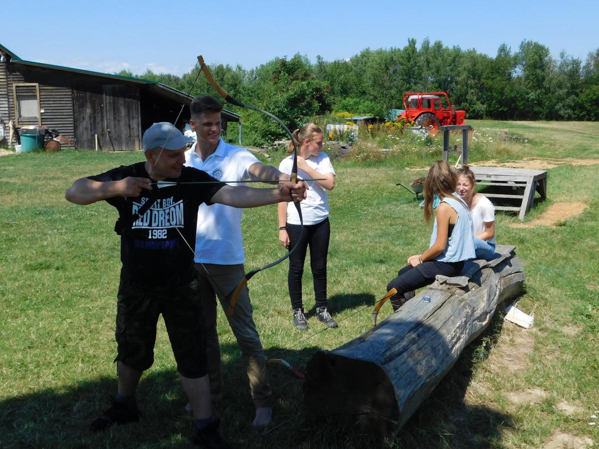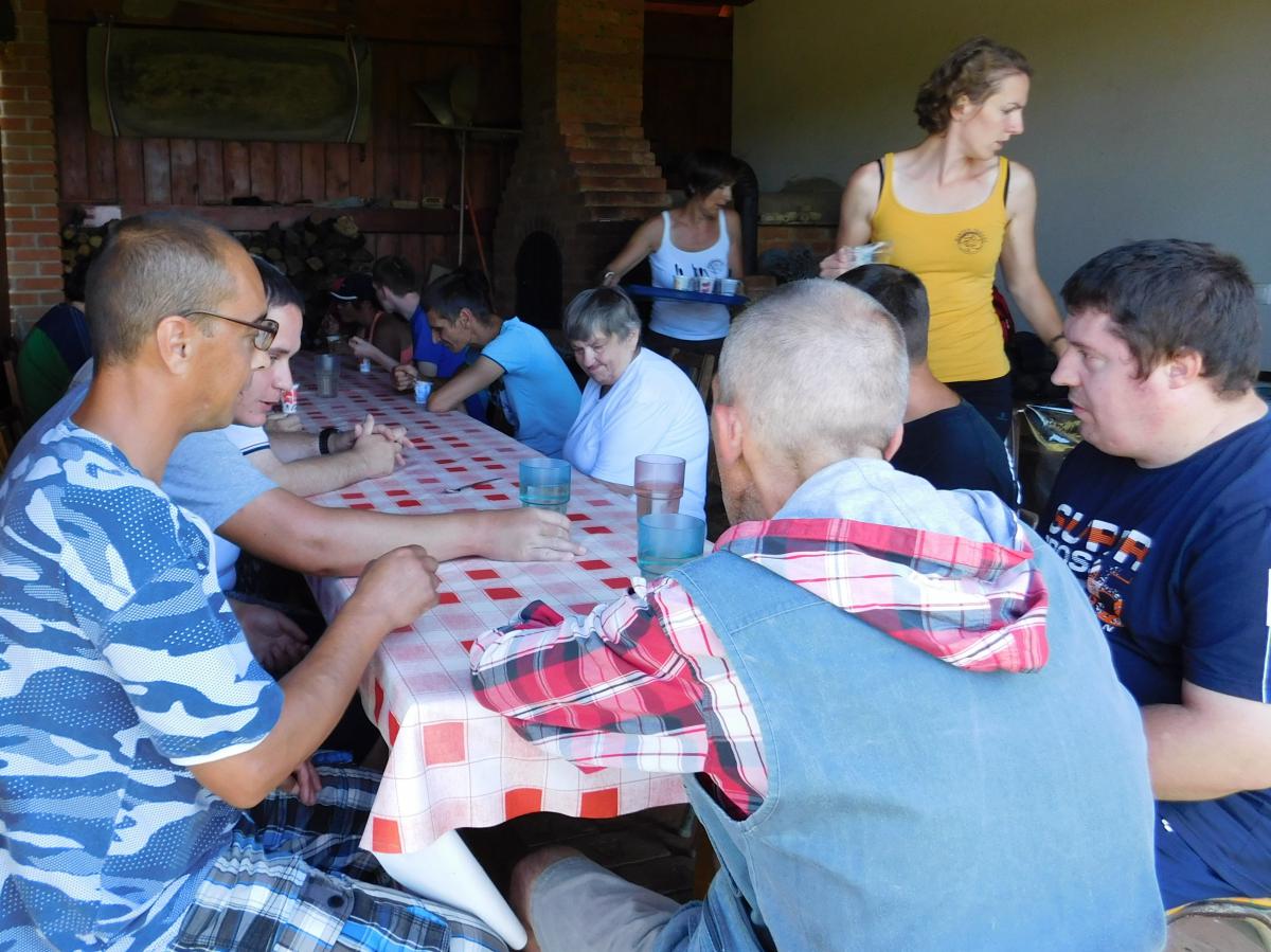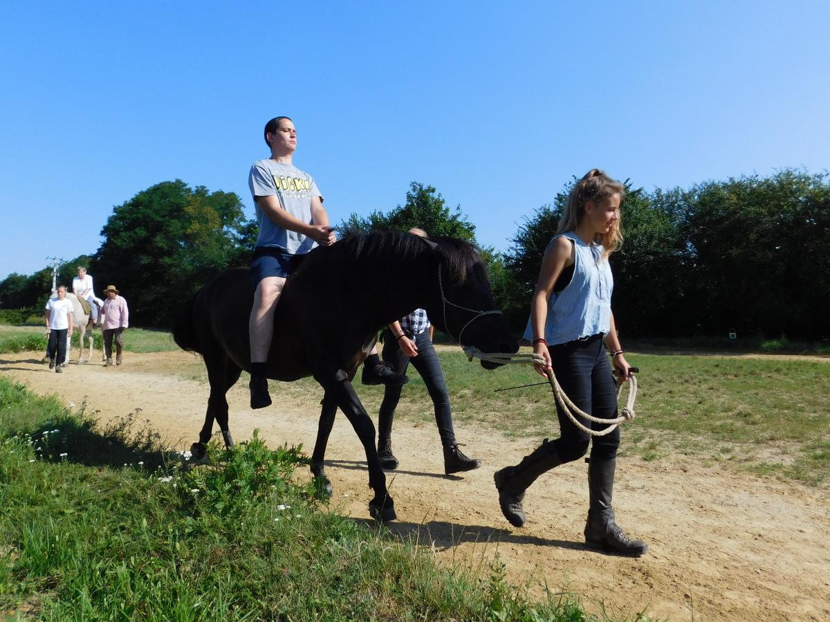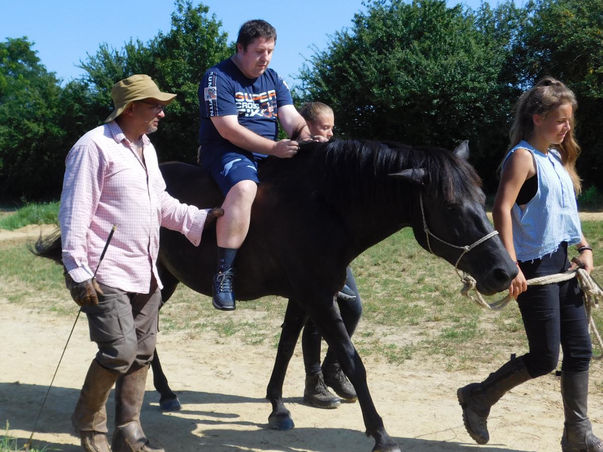 Július 30-án, csütörtökön hat lakóval felkerekedtünk és meg sem álltunk Horvátzsidány hataráig. A falutól nem messze, de a civilizációtól mégis tisztes távolságban terül el Martonszállás. Egy tisztás közepén, a Kőszegi-hegység lankás előterében egy varázslatos világ bontakozik ki a látogató előtt. Mintha nem is a megszokott mindennapokban járnánk, hanem egy romantikus film díszletei közé csöppentünk volna. Marton Ágoston, a hely gazdája már évek óta minden nyáron egy hétre vendégül lát fogyatékkal és pszichiátriai betegséggel élő embereket. A táborban lovaglással, íjászattal, kézműves foglalkozások telik az idő, és a rátermett segítők keze alatt közösséggé formálódik a csapat. Az ide esztendőben a koronavírus járvány miatt elmaradt az egyhetes tábor sok-sok ellátott szomorúságára. Egy kicsit azért megvigasztalt minket Ecker Zita, zsirai mentálhigiénés kolléganőnk telefonhívása, aki egy egynapos, sűrített táborpótló napot ajánlott nekünk. Így jutottunk el idén is egy kisbusznyi lakóval Martonszállásra. Zoli és Ervin, két lakónk, akik már tapasztalt táborozók itt, pillanatok alatt eligazítottak minket az alapvető tudnivalókról, s közben megérkeztek a társintézmények lakói is. A program 9 órakor kezdődött, az első napirendi pont a lovaglás volt. A szépen gondozott, kezes terápiás lovak még a félénkebb lakók bizalmát is elnyerték. Minden ló mellé két segítő is jutott, akik a még esetleg fennmaradó félelmeket is pillanatok alatt eloszlatták. A lovaglás után íjászattal folytatódott a foglalkozás. Két csoportra osztották az érdeklődőket, a tapasztalt íjászok vesszői már rögtön büszkén csapódtak a céltáblák közepébe, a kezdők pedig precíz oktatatást kaptak a visszacsapó íj használatáról. Azt vettük észre, hogy a délelőtt pillanatok alatt elrepült. Millió élménnyel és kellemesen elfáradva költöttük el a közös ebédet. Kettő órakor búcsút vettünk vendéglátóinktól. Elköszöntünk, de értékes élményekkel gazdagodva Martonszállás egy kis darabját a szívünkben hazahoztuk magunkkal. Ha tehetjük, akkor ezt a programot jövőre biztosan megismételjük.
