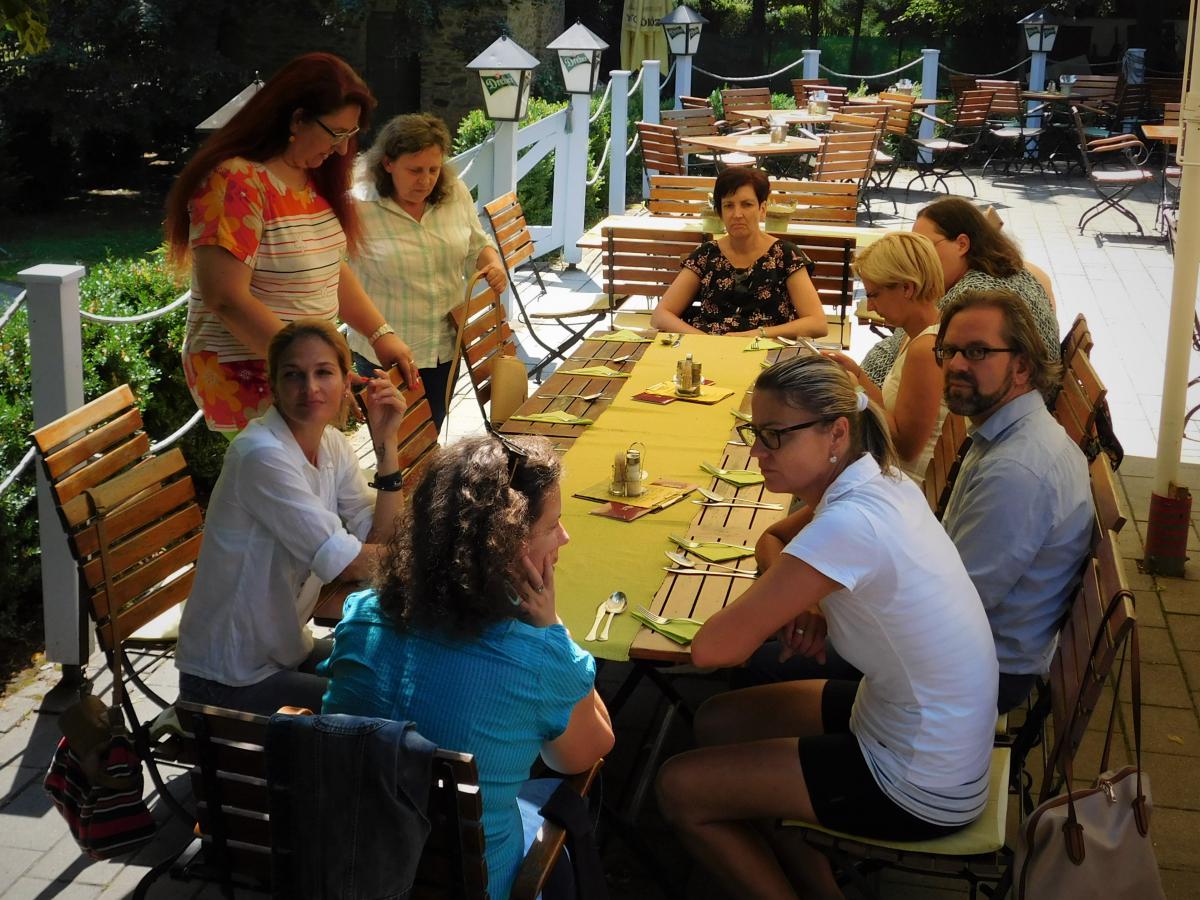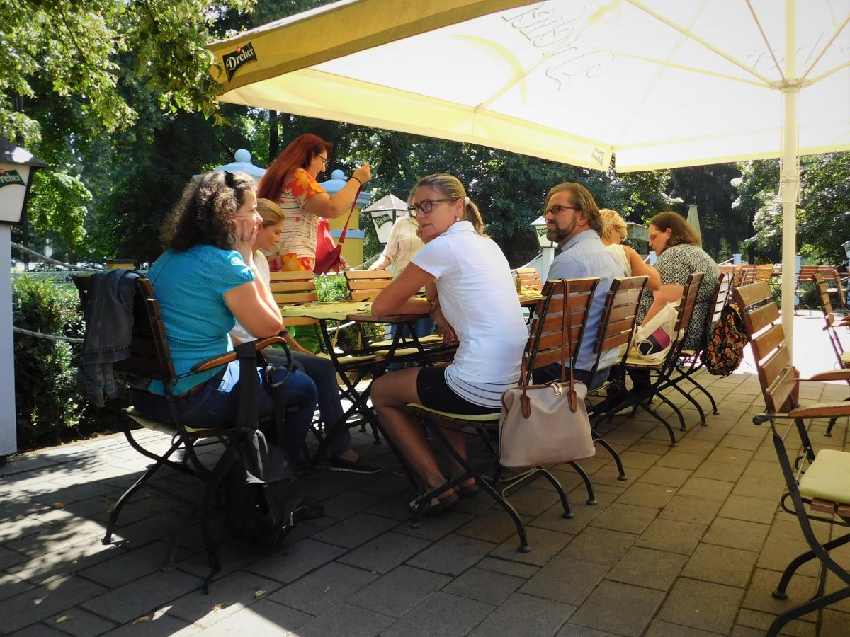 A beszélgetést már személyesebb formában a közös ebéd során is folytattuk, majd a programot egy belvárosi sétával fejeztük be. Búcsúzáskor megfogalmazódott bennünk, hogy a közös munkát jó volna egy olyan program megszervezésével folytatni, amikor nem csak a munkatársak, hanem ellátottaink is találkozhatnának egymással. Reméljük ez a közeljövőben meg is valósulhat.