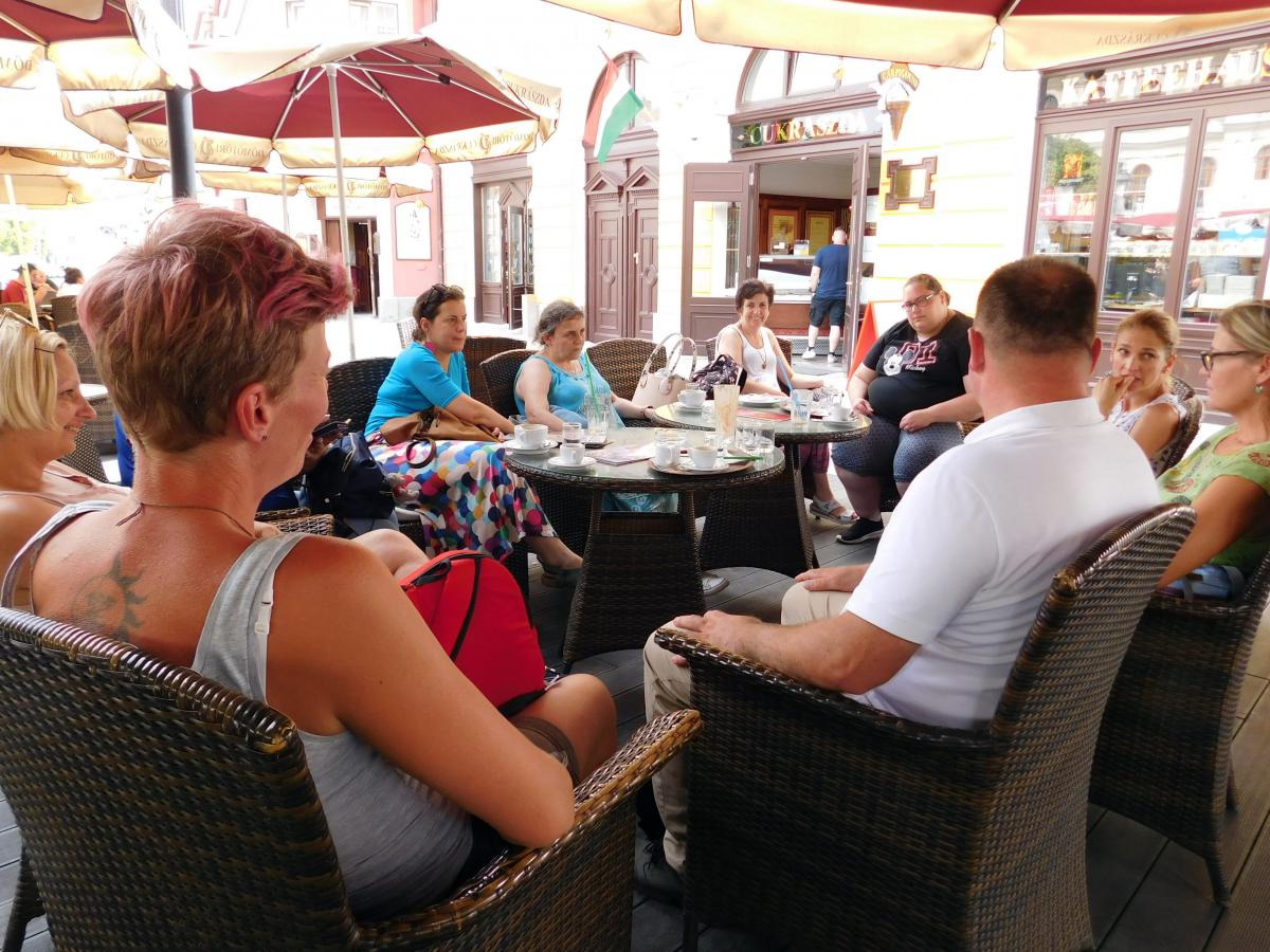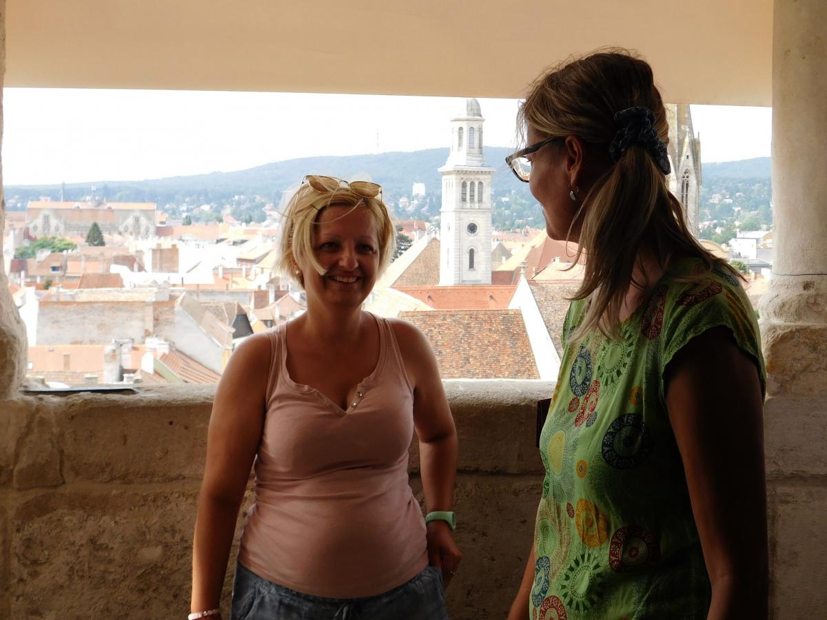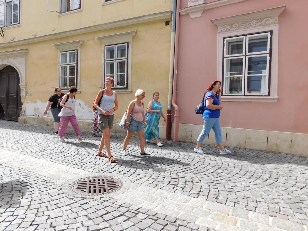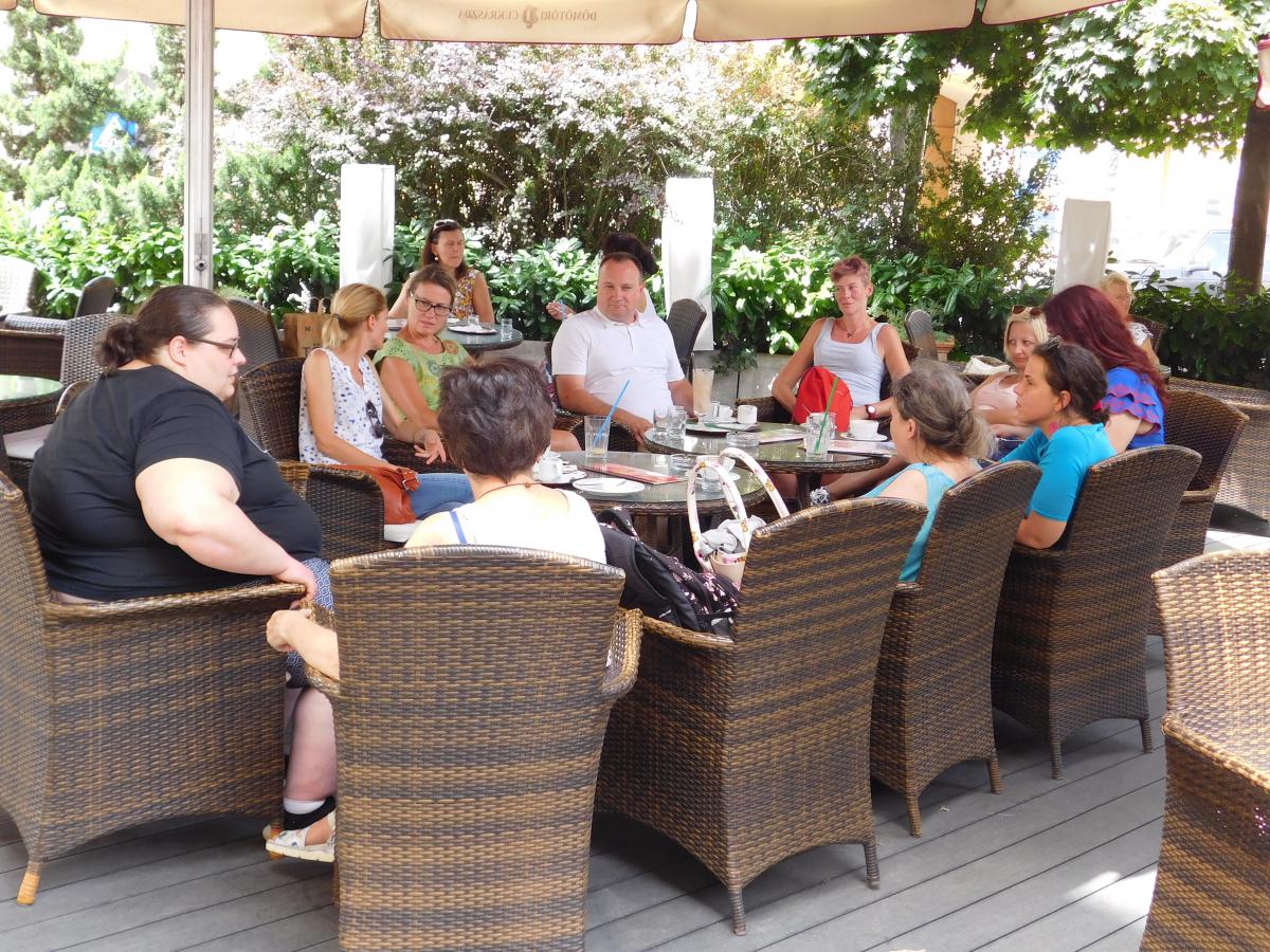 A nap második fele Sopronban városnézéssel folytatódott. A belvárosi séta jó alkalom a város nevezetességeivel való ismerkedésre és spontán beszélgetésre. Közben a vállalkozó kedvűek felmászhattak a város egyik szimbólumaként ismert Tűztoronyba, ahonnan kilátás nyílik a zegzugos utcákra, Sopron tornyaira és a környező hegyekre. Az ebédet a város másik ikonikus helyén a Gyógygödörben fogyasztottuk el. Majd a vonat indulása előtt még egy kávé mellett összefoglalhattuk a nap tanulságait. Abban mindenki egyezértett, hogy az ilyen találkozások, a fizikai távolság ellenére is egyre inkább összefonódó munkatársi közösség, egy ilyen "laza", de mégis tartalmas nap mindannyiunknak erőt ad a további munkához.