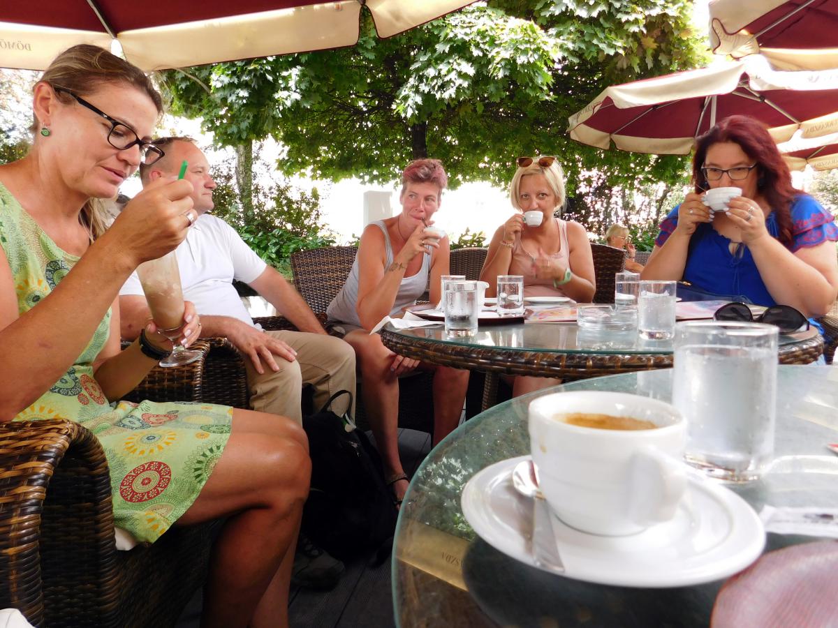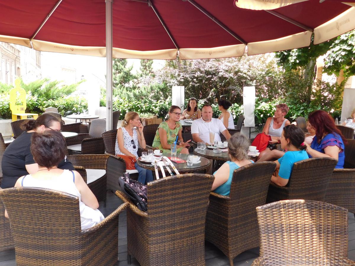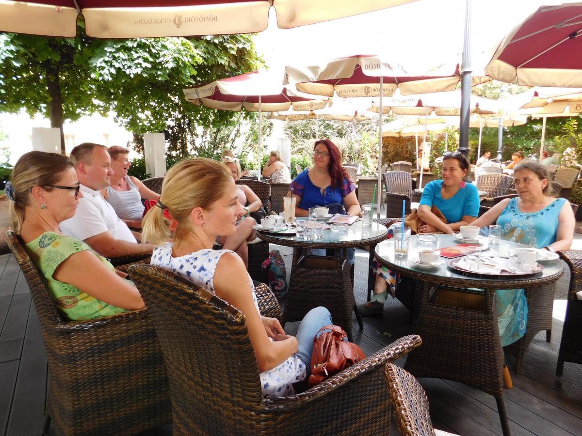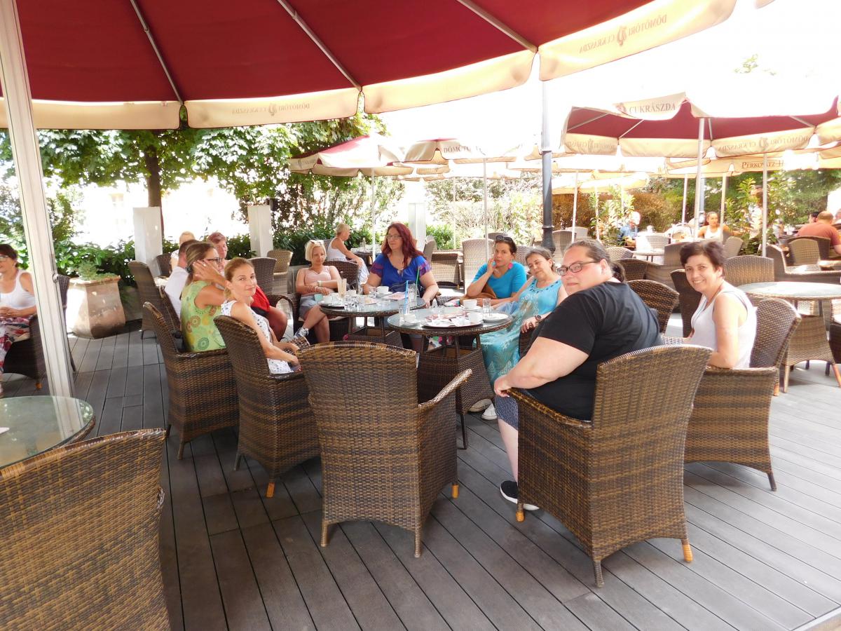 A nap második fele Sopronban városnézéssel folytatódott. A belvárosi séta jó alkalom a város nevezetességeivel való ismerkedésre és spontán beszélgetésre. Közben a vállalkozó kedvűek felmászhattak a város egyik szimbólumaként ismert Tűztoronyba, ahonnan kilátás nyílik a zegzugos utcákra, Sopron tornyaira és a környező hegyekre. Az ebédet a város másik ikonikus helyén a Gyógygödörben fogyasztottuk el. Majd a vonat indulása előtt még egy kávé mellett összefoglalhattuk a nap tanulságait. Abban mindenki egyezértett, hogy az ilyen találkozások, a fizikai távolság ellenére is egyre inkább összefonódó munkatársi közösség, egy ilyen "laza", de mégis tartalmas nap mindannyiunknak erőt ad a további munkához.